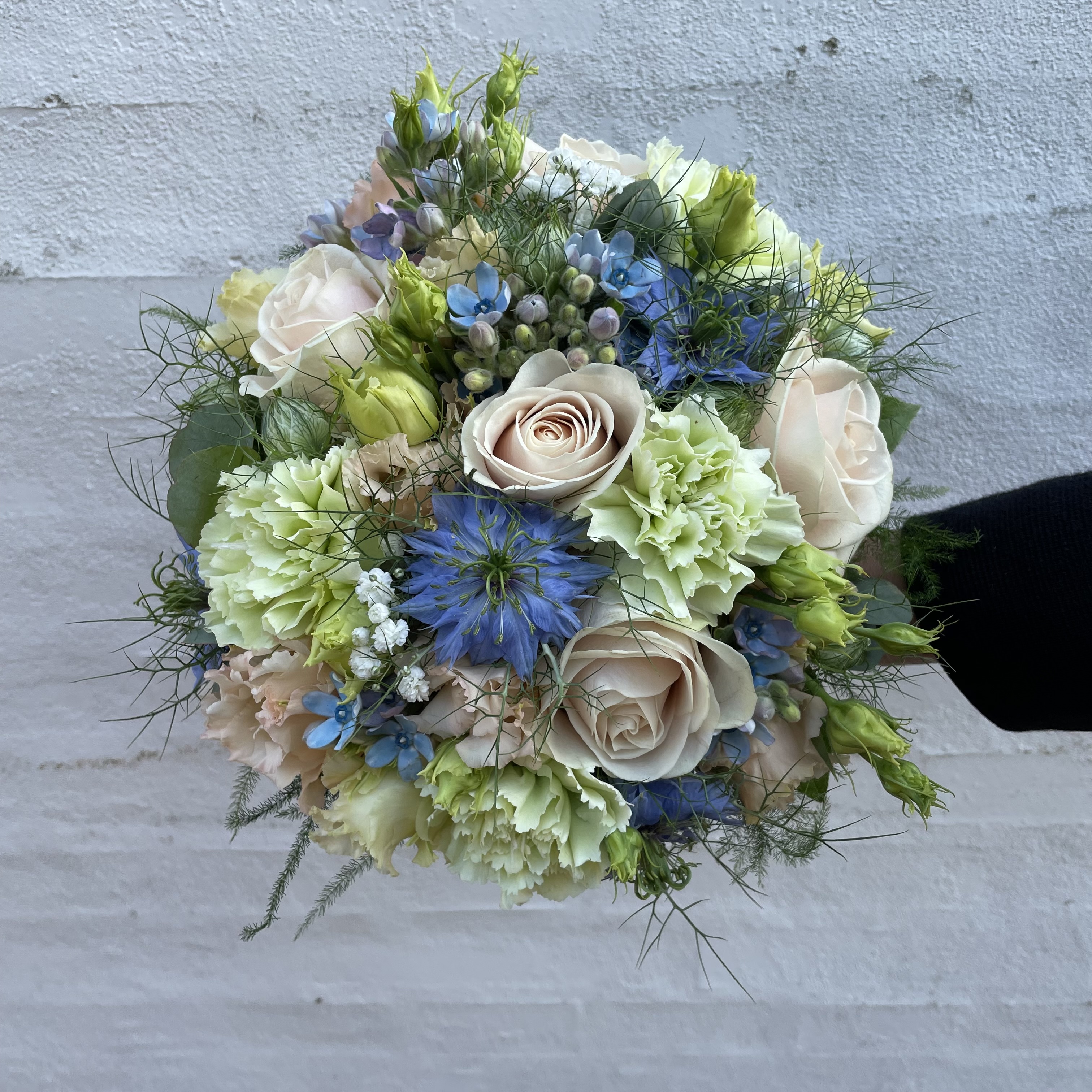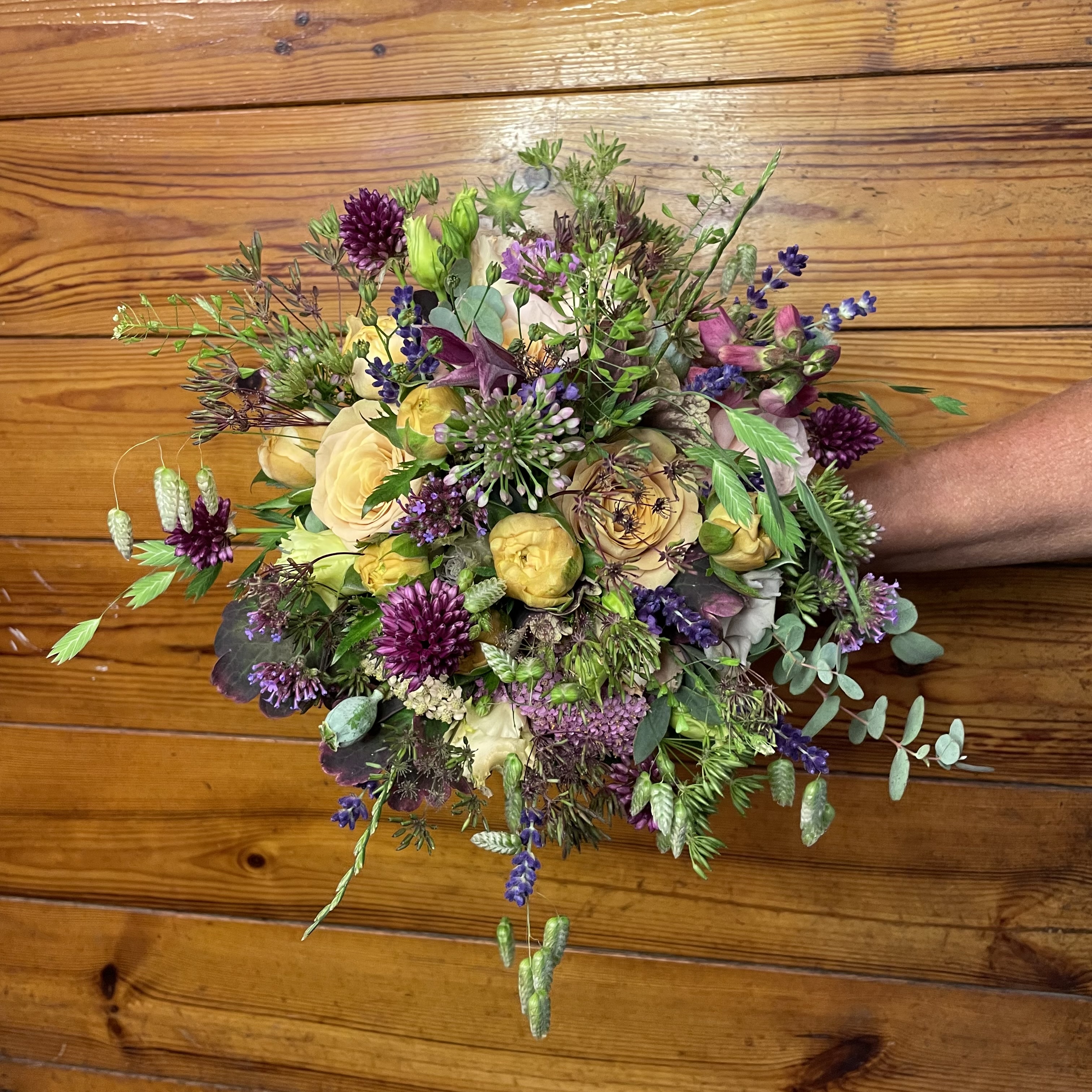 En håndbundet buket passer godt til buketter, som har udtryk som vild boheme eller som tæt rund rokokkobuket.
