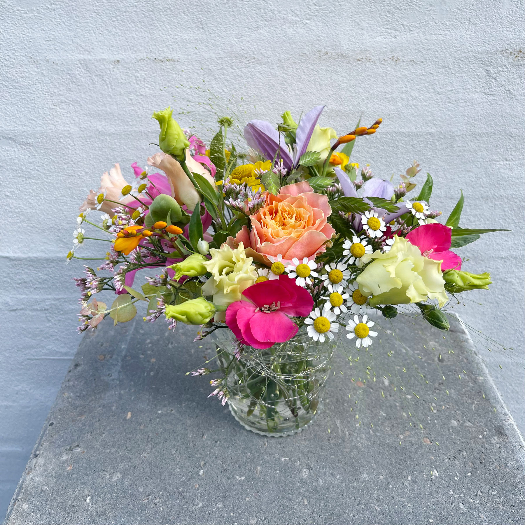 Billedet er vejledende og blomstervasen varierer efter årstiden og dagens udvalg.